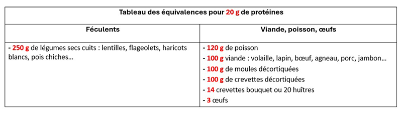 Afin de limiter le risque de dénutrition, il est recommandé de consommer des protéines quotidiennement, à raison de :