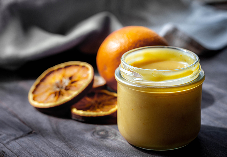 Cette recette de crème à l'orange vous permettra de réaliser la bûche végétale chocolat-noisette-orange.