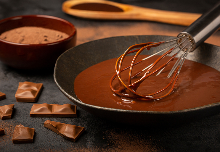 Faire fondre le chocolat et la boisson à la noisette au bain-marie en mélangeant régulièrement.