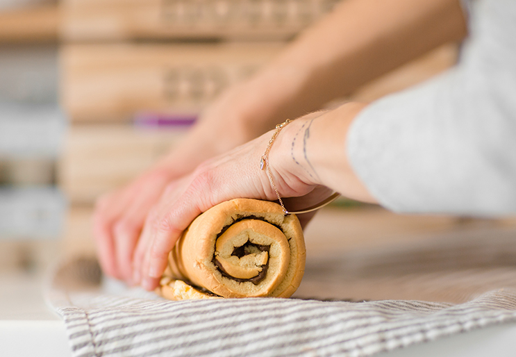 Retourner la génoise sur un torchon propre et humide et la rouler sur elle-même dans le torchon, en serrant sans la casser.