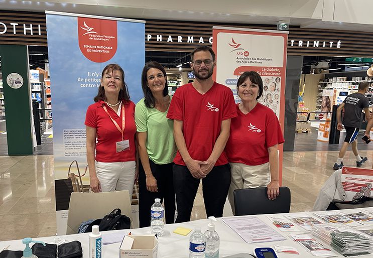 Les bénévoles participent aussi à la Semaine Nationale de Prévention, à la Journée Mondiale du Diabète, ou encore à des journées d’accueil des étudiants, organisées à Nice : « Je pensais que les jeunes ne se sentiraient pas concernés, mais je me suis trompé et l’équipe a bien fait d’insister pour participer à cette journée ! Tous étaient intéressés par notre stand. Sur 120 dépistages réalisés lors d’une journée, 16 jeunes présentaient un taux de sucre élevé. Ils ont pu être orientés vers des professionnels de santé », déclare Pascal.